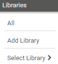 Open a library. Hover overSelect Library to show more options. Follow the alphabetical menu path that is specific to your setup to view your libraries. Click a library to open it.