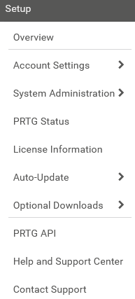This documentation refers to an administrator that accesses the PRTG web interface on a master node. Other user accounts, interfaces, or failover nodes might not have all of the options in the way described here. In a cluster, note that failover nodes are read-only by default.